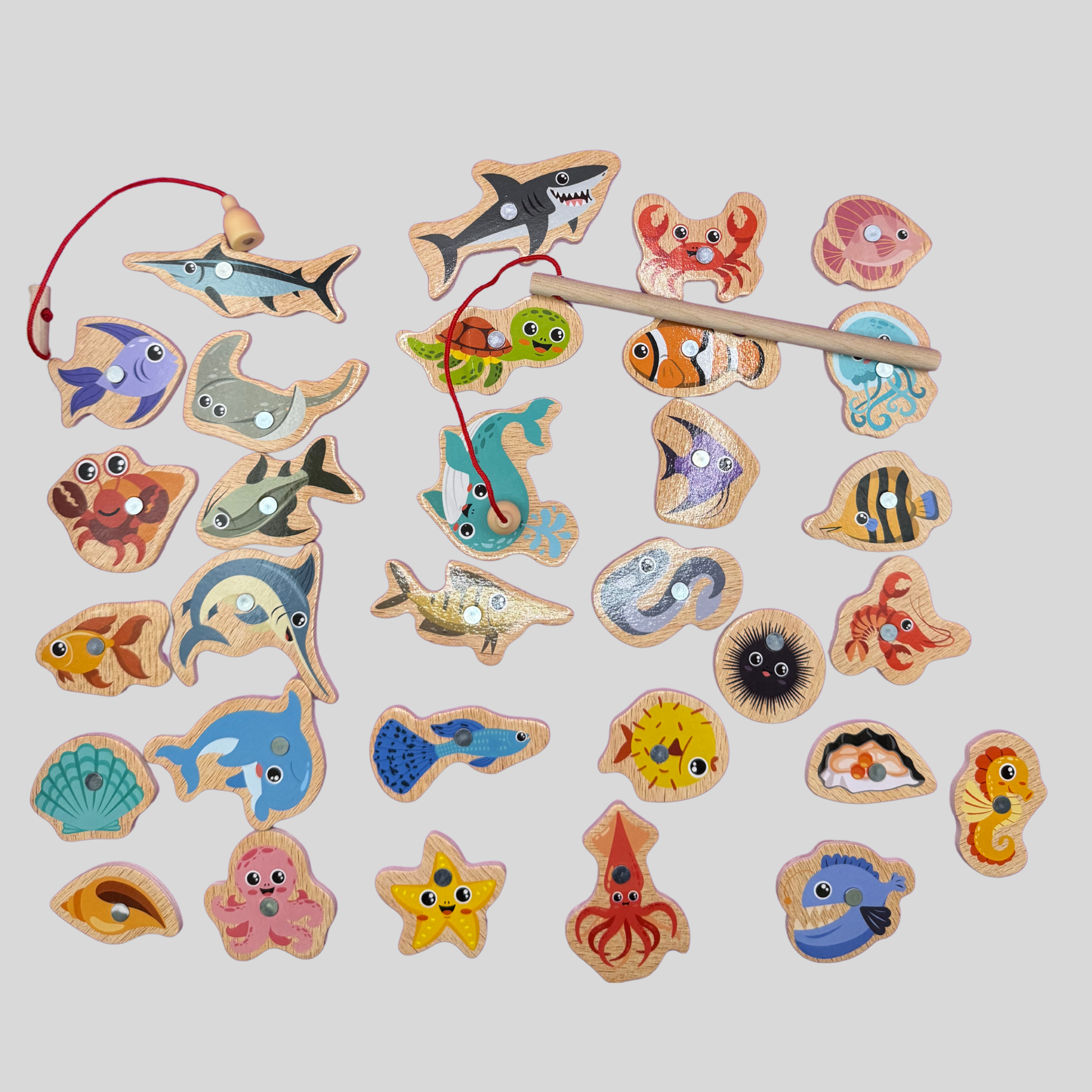 - Tartozékok: 31 hal, 2 horgászbot, 1 vödör,